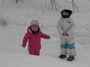それだけでもわくわくしますが、せっかくなら雪遊びを。雪の滑り台までできちゃいます。